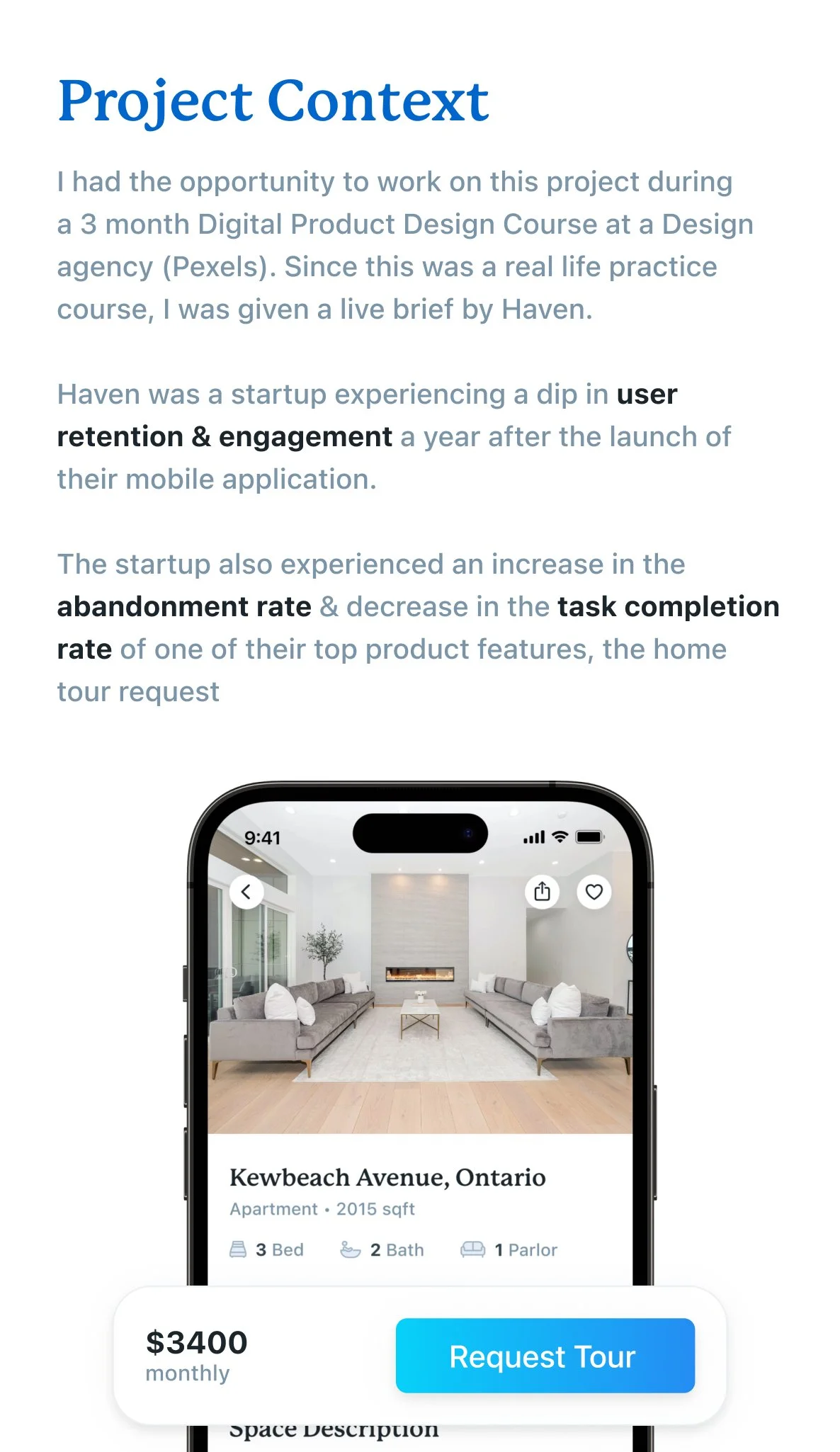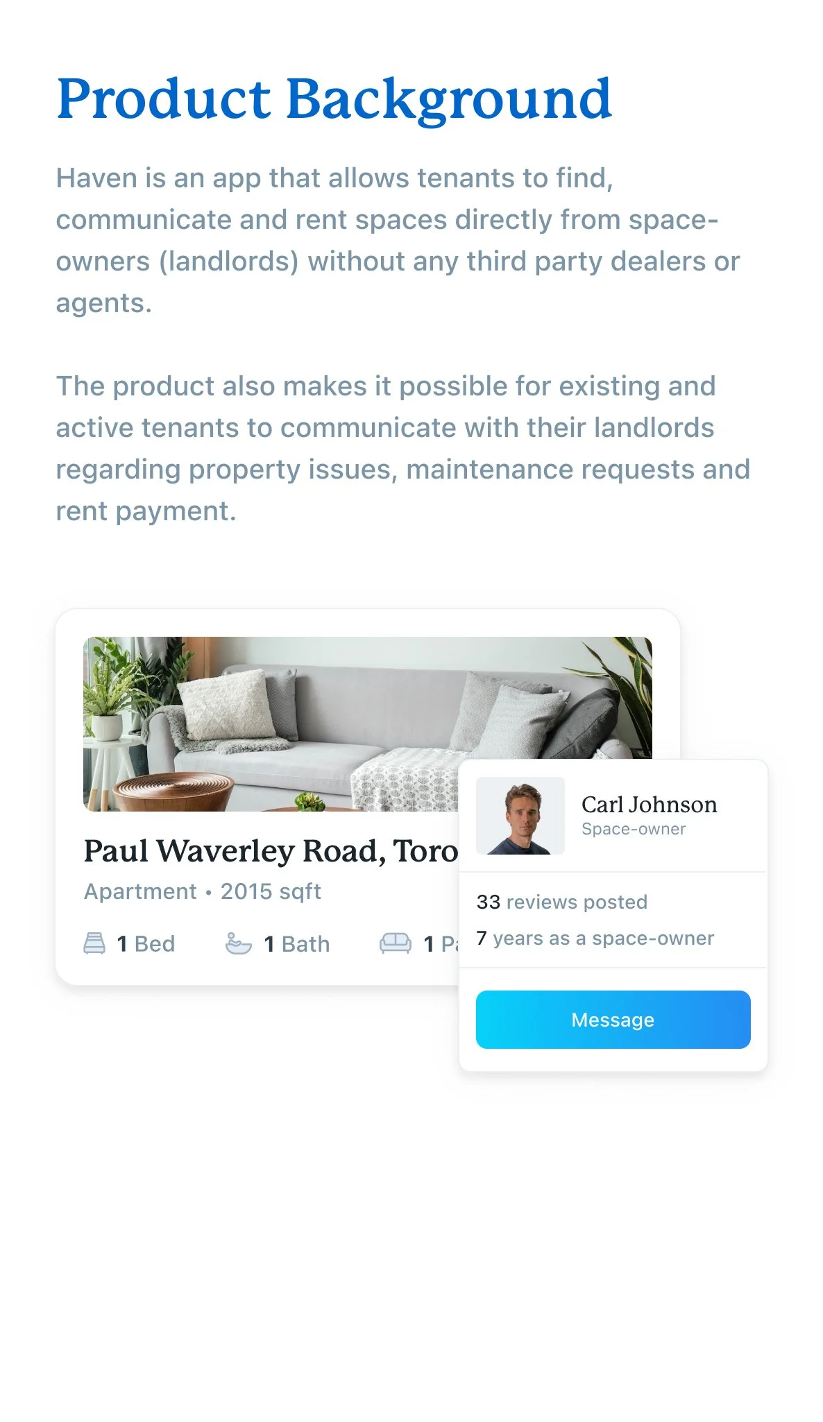 • Create a habit-forming native app which allows users (tenants and space-owners) to request home tours in a few taps, quickly list spaces and communicate with each other easily